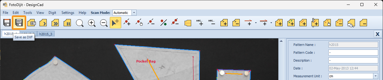 1.) After the pattern digitizing process is completed, click the Save as DXF