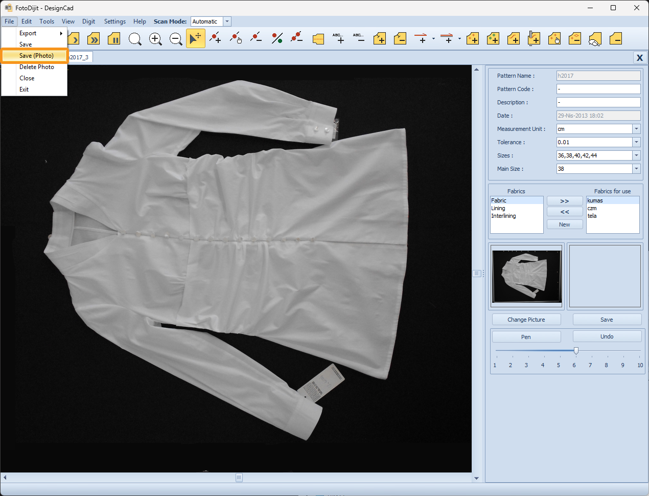With Fotodijit, you can not only digitize your patterns but also take photos of your models and save them in image format.