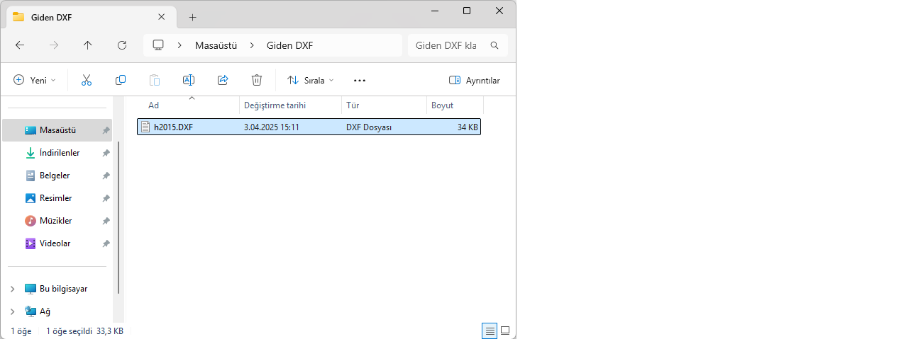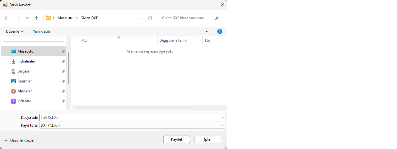 4.) Açılan DXF ihraç penceresinden İhraç Et tıklanarak model dosyası DXF olarak kaydedilir.