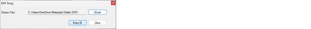 2.) Açılan DXF İhraç penceresinden Gözat ile dxf dosyasının kayıt yeri seçilir.
