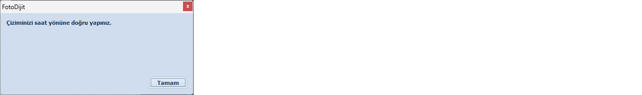 2.) Çıkan çizimi saat yönüne doğru yapınız uyarısı Tamam ile geçilir.