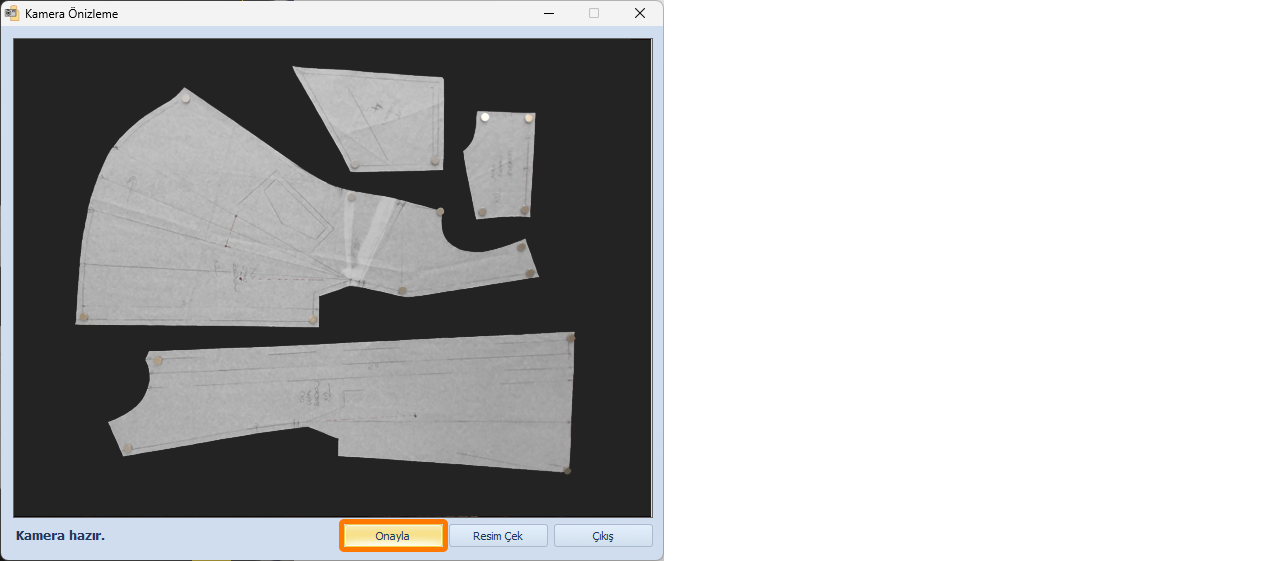 3.) Çekilen resim Kamera Önİzleme penceresine gelir, Onayla butonu ile resim onaylanır.
