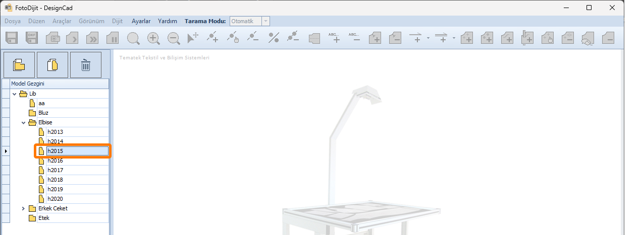 Mevcut bir modele sonradan eklenecek kalıp resmi çekilecekse, ana ekranda Model Gezgini sütunundan model mouse ile çift tıklanarak açılır.