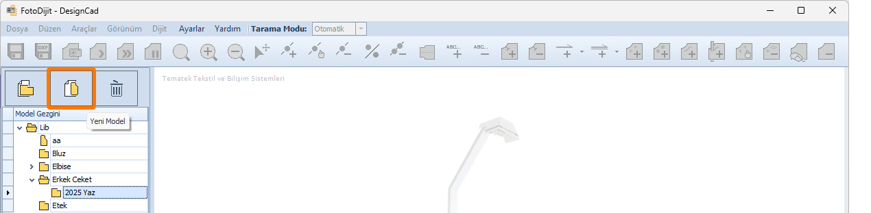 1.) Ana ekranda sol sütunda modelin içinde oluşturulacağı klasör seçilir ve üst menüden Yeni Model