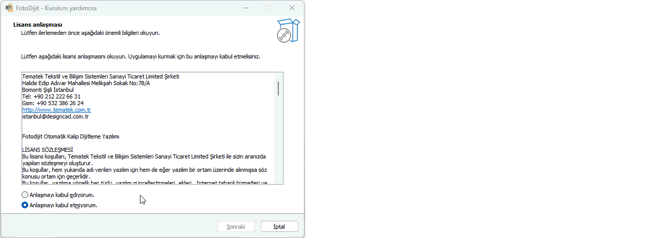 4.) Kurulum tamamlandıktan sonra, Fotodijit yazılımını çalıştırın ve lisanslama işlemi için Lisans Etkinleştirmesi bölümüne bakın.